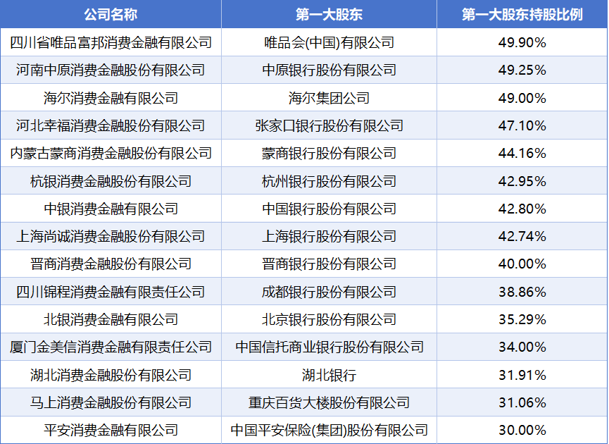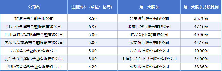 (主要出资东谈主握股比例未达标消金公司名单)