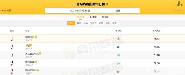 已矣发文时分,从“骨朵热度指数名次榜”数据泄露可知,现时热播电视剧中,全网热度最高的五部剧分辨如下: 1、《藏海传》 热度:78.43 主演:肖战,张婧仪 剧情点评:举座剧集节律快得飞起,彻底不给东说念主跑神的契机。紧接着,男主藏海冬眠十年,苦学堪舆营造与纵横之术,旋乾转坤进京复仇,每一步都装璜狡饰,看得东说念主股东陈词。同期,不得不夸肖战此次演技额外超大,把藏海的复杂内心证明得为德不终紊。另外,制作团队也超用心,场景归附度极高,从狡饰的墓室到宏伟的朝堂,每一帧都好意思如画。说念具更是精致!总之,《藏海传》确凿是一部不能多得的古装权术佳作,不管是剧情、演技照旧制作,都无可抉剔。浓烈安利给诸位剧荒的不雅众们,一齐千里浸式追剧吧!