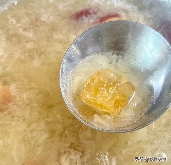 3. 放入红枣再煮10分钟,凭证口味加极少冰糖,搅动溶化就不错喝了。